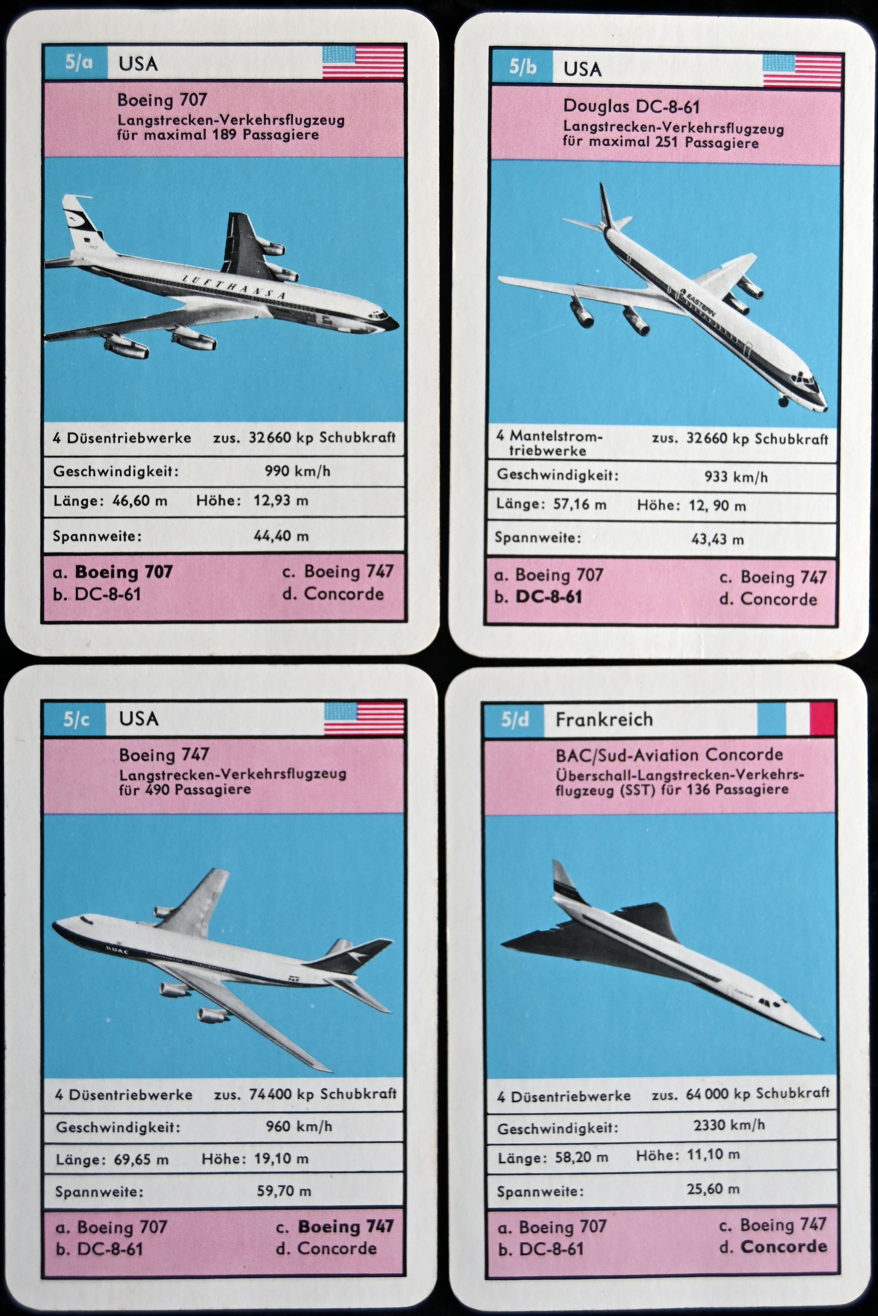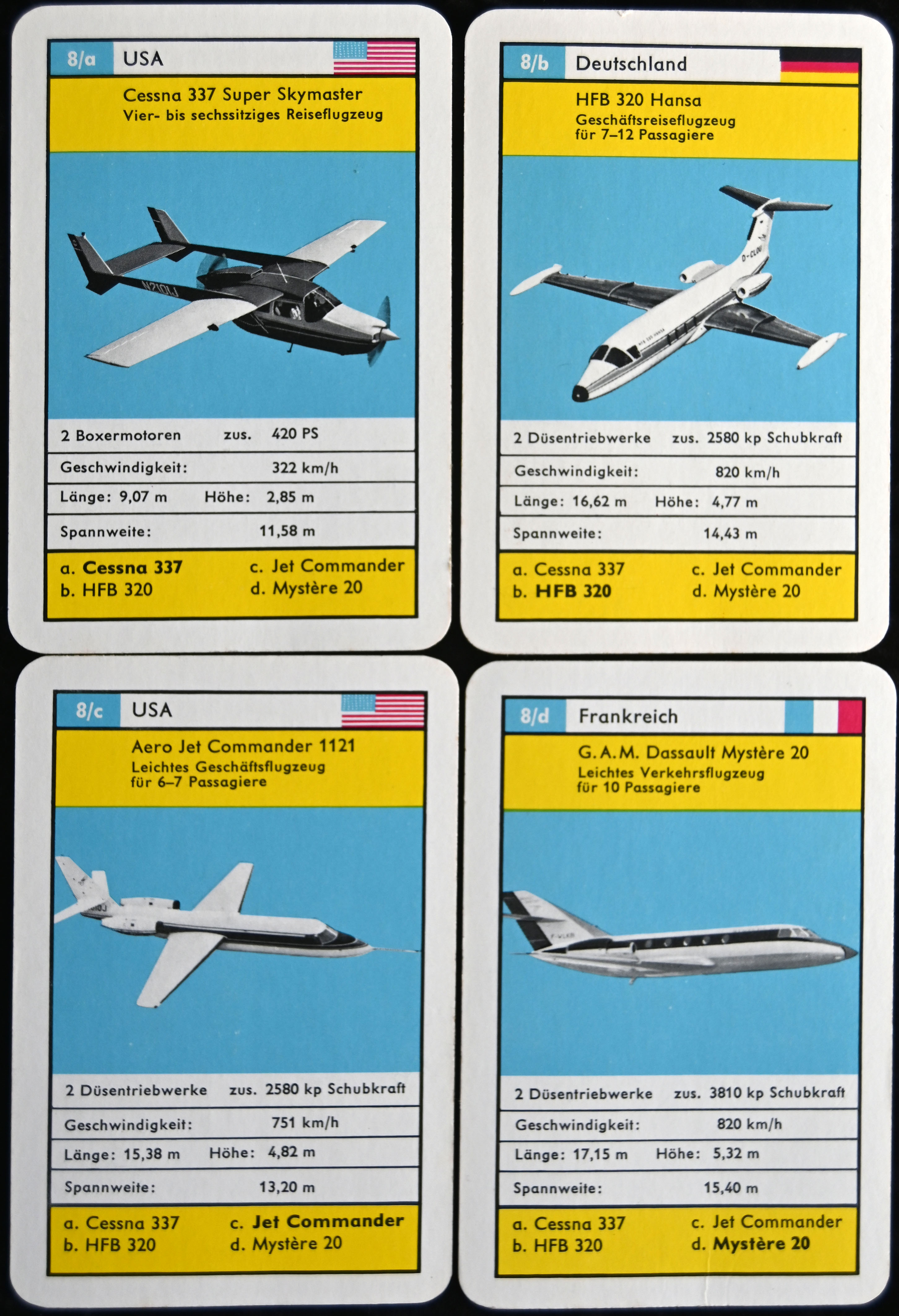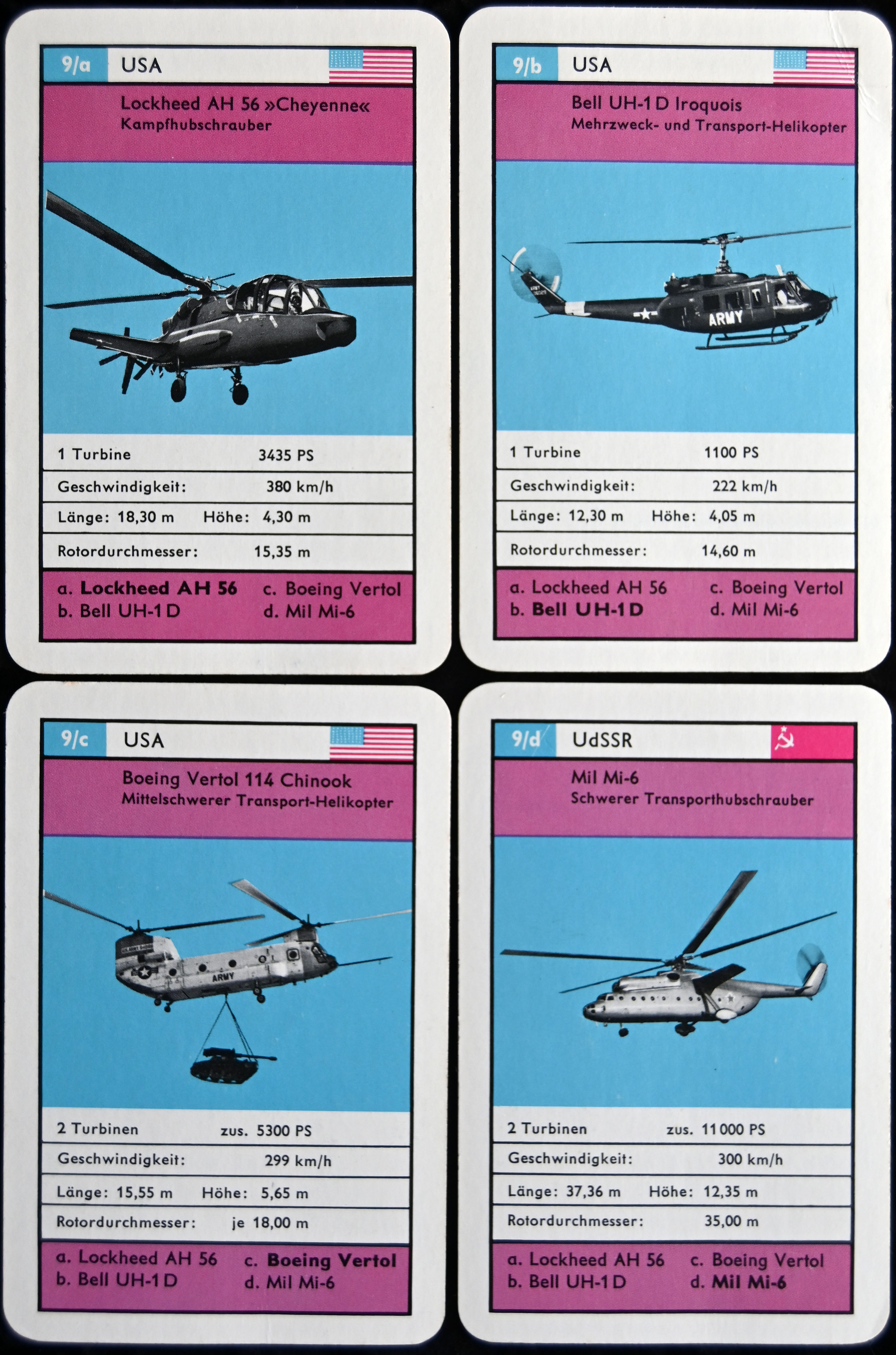 9 Quartette, jedes Quartett zeigt Produkte einer Firma, Werbung
